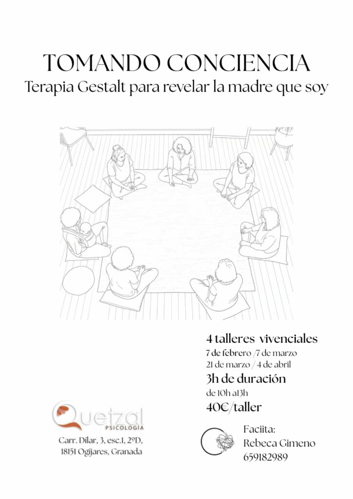 En estos cuatro talleres trabajaremos desde la Terapia Gestalt para tomar conciencia, revisar, conectar y actualizar, quiénes somos como madres y, más allá, como mujeres. Este proceso de búsqueda es profundamente individual, pero se amplifica y enriquece al ser compartido en círculo. El grupo es un espejo y un soporte, un lugar seguro donde la vulnerabilidad nos hace más fuertes. Al compartir con otras mujeres, no solo validamos nuestra propia experiencia, sino que también ampliamos nuestra perspectiva y la experiencia del trabajo terapéutico.